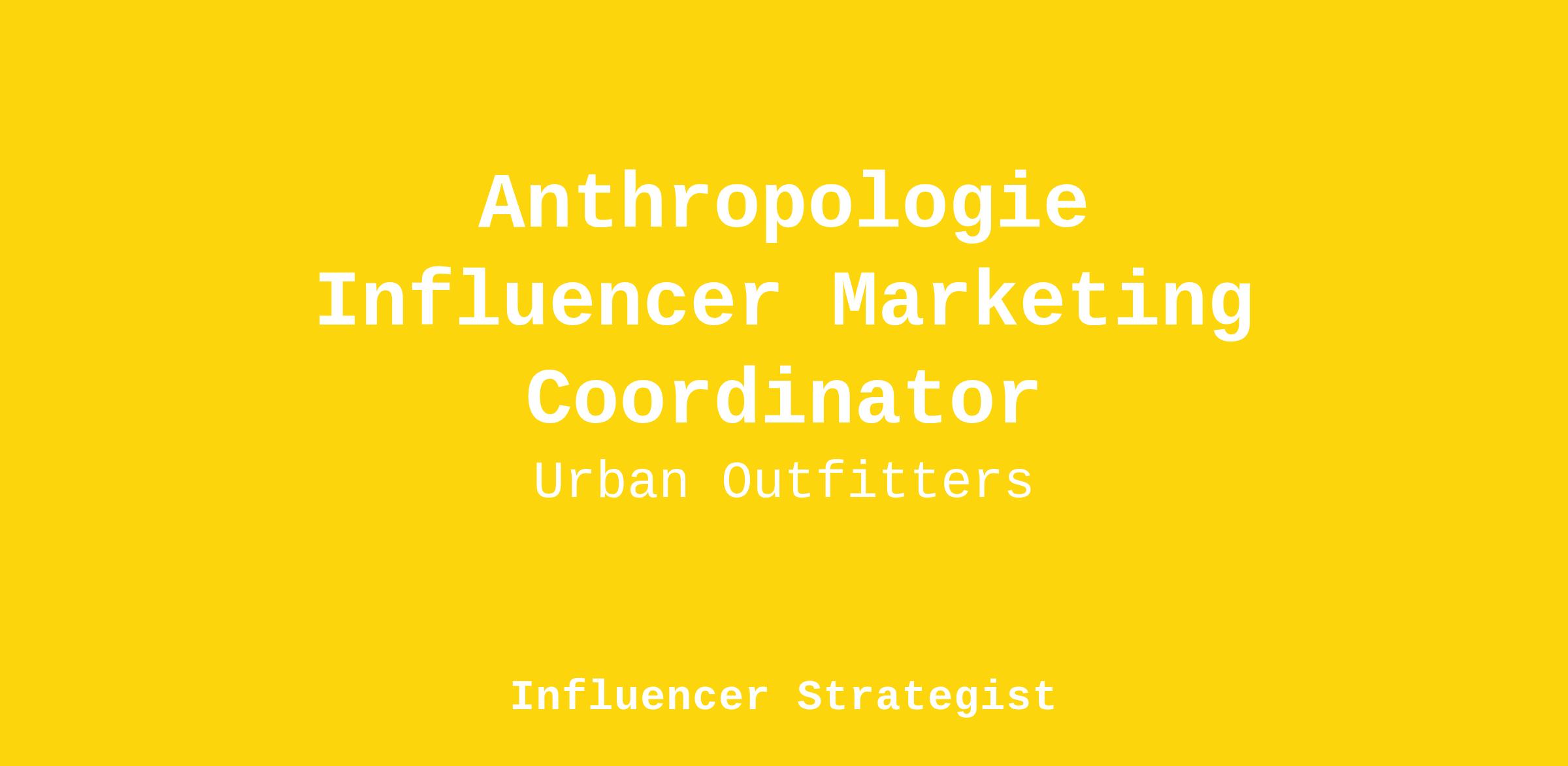 Anthropologie is looking for an Influencer Marketing Coordinator. The Influencer Marketing Coordinator will support the day-to-day of the Anthropologie influencer marketing team. This person will report to the Influencer Marketing Associate and partner with Anthropologie’s crossfunctional teams to support the execution of the Anthropologie, AnthroLiving and BHLDN influencer campaigns and giftings.