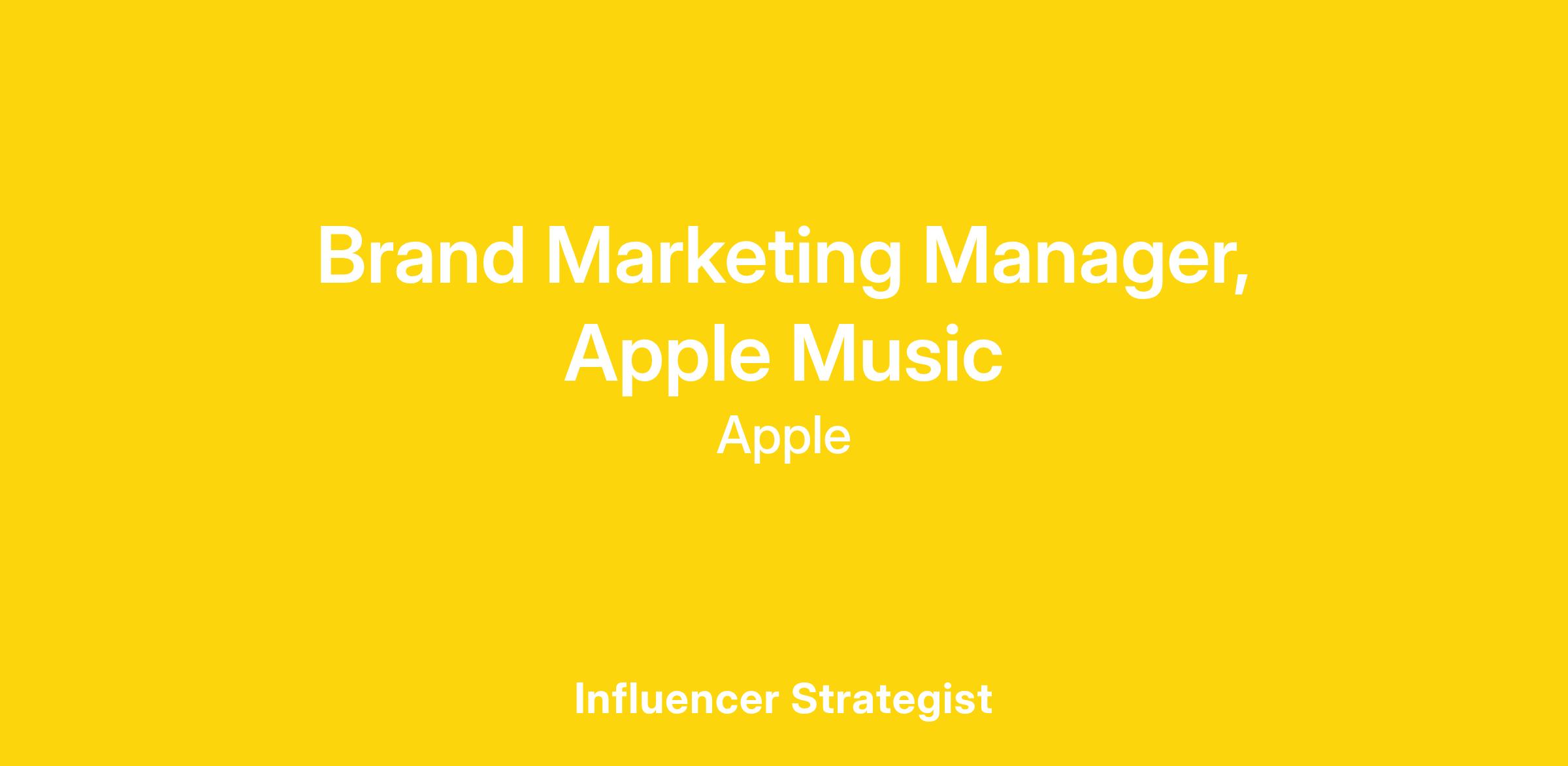 As a Brand Marketing Manager on Apple Music, you will play a pivotal role in shaping and executing creative and innovative, integrated marketing strategies that reinforce Apple Music’s position as a global leader in music.