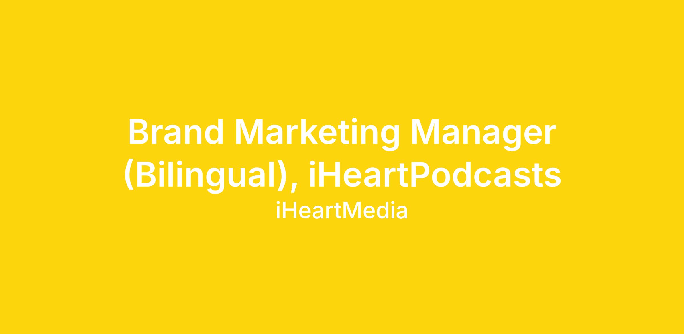 Bring podcast brands to life. As a Brand Marketing Manager (bilingual in English & Spanish) for iHeartPodcasts, you'll play a key role in developing, executing, and optimizing marketing initiatives for our diverse portfolio of shows. You will help grow podcast audiences at scale through thoughtful campaign execution, strong cross-functional collaboration, and data-driven insights. The ideal candidate is highly organized, creatively curious, digitally fluent, and excited to help our podcast brands connect with listeners.