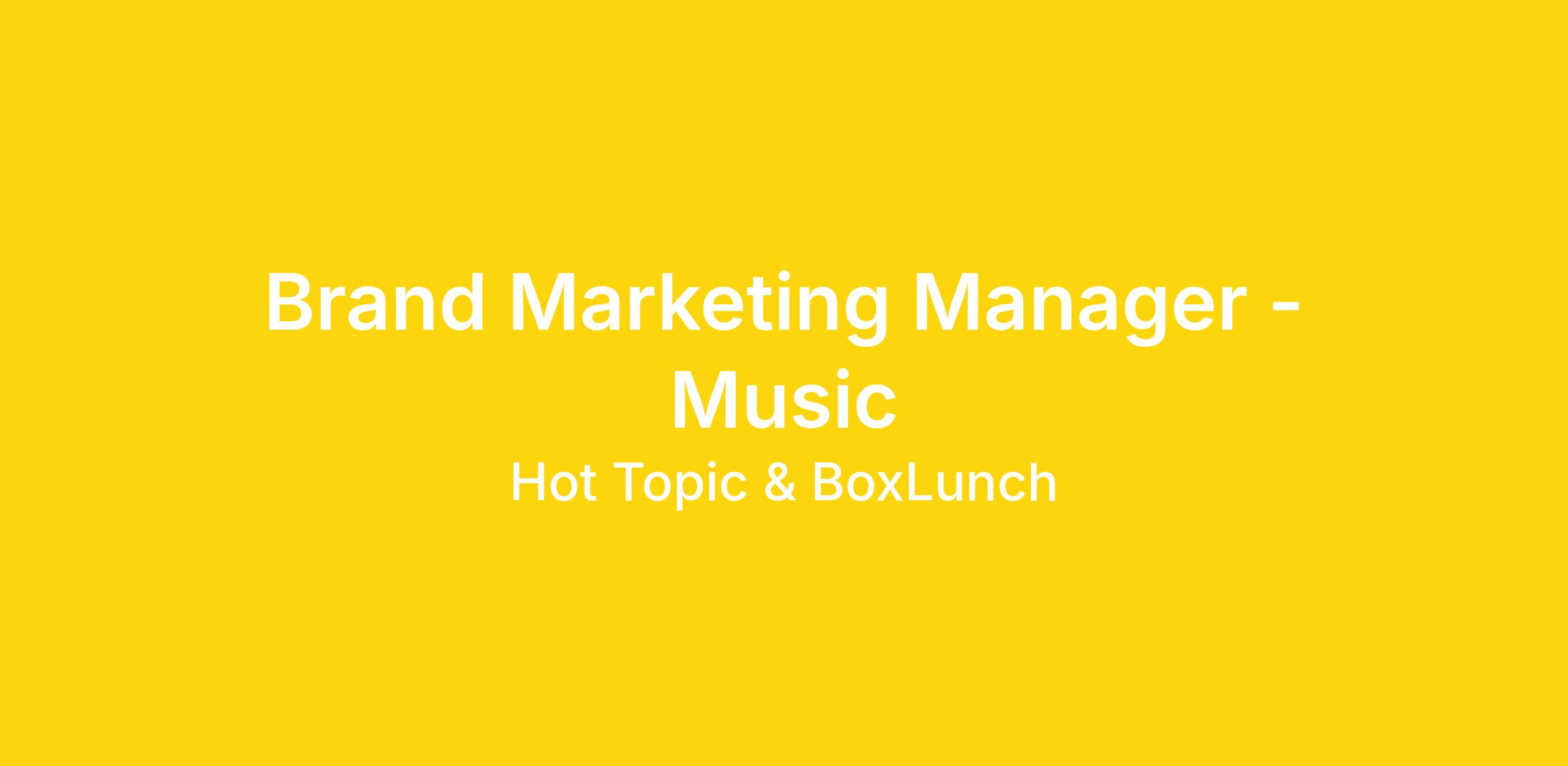 Do you listen to new releases on Thursday night at 9pm? Are you the first to discover the next breakout artist, album drop, or cultural moment before it hits the mainstream? We are looking for a creative, analytical, and results-driven Manager of Brand Marketing, Music to lead marketing strategy and execution for Hot Topic’s music category. This role is responsible for developing breakthrough campaigns and artist-focused initiatives that reinforce Hot Topic as the ultimate destination for music, fashion, and pop culture.