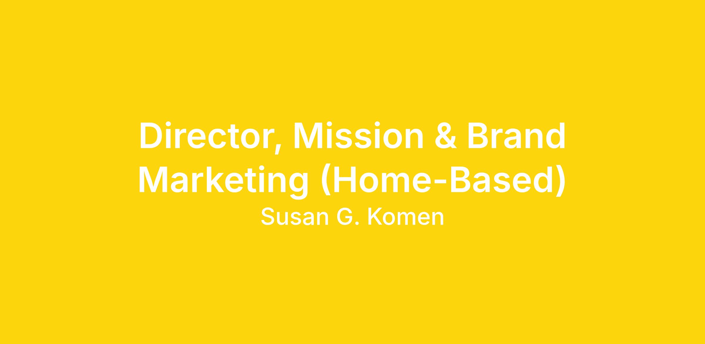 The Director, Mission & Brand Marketing is a senior marketing leader responsible for driving integrated planning, audience insights, performance marketing strategy, and cross-channel campaign orchestration across Susan G. Komen’s marketing ecosystem with a focus on Mission and Brand marketing. Reporting to the VP, Brand Marketing & Partnerships, this role ensures that brand, mission, community, partnership, and digital marketing efforts work together cohesively to strengthen awareness, engagement, participation, and meaningful action among individuals, communities, and organizations.