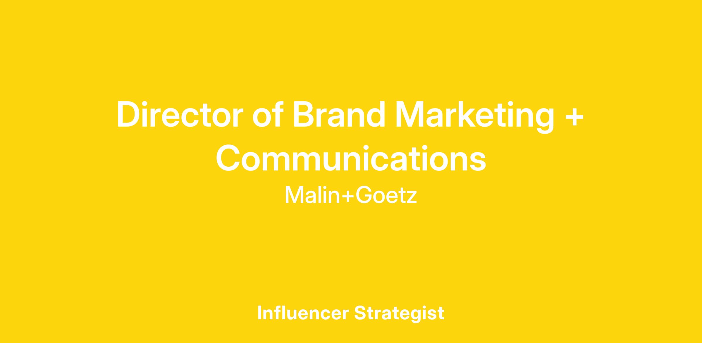 Company Description: (MALIN+GOETZ) is a fast-growing, 18-year-old, founder-based gender-neutral beauty and lifestyle business based in New York City. We operate 13 flagship apothecaries in NYC, LA, London and Hong Kong; along with an expanding presence online through www.malinandgoetz.com. Additionally, the brand is listed internationally with 600+ high-end accounts across five continents, including Space NK, Selfridges, Liberty, Nordstrom, Lane Crawford and Sephora; and amenity partners that include 5* hotels, spas and concept gyms. Our company champions three values: humanity, empathy + fight, and these values are embedded into everything we do. We foster employees to represent these values in all aspects of their work.