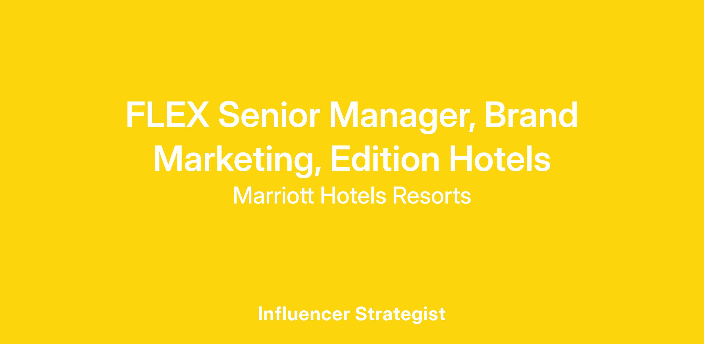 The (flex) Senior Manager, Global Brand Marketing – EDITION is a strategic, culturally attuned brand storyteller with a passion for modern luxury, innovation, and experience design. This role supports the Senior Director, Brand Marketing in leading go-to-market strategies, experiential activations, and campaign development for EDITION. As a key member of the EDITION and W Hotels Global Brand Team, this person is responsible for amplifying EDITION’s global brand relevance across owned, earned, and paid channels.