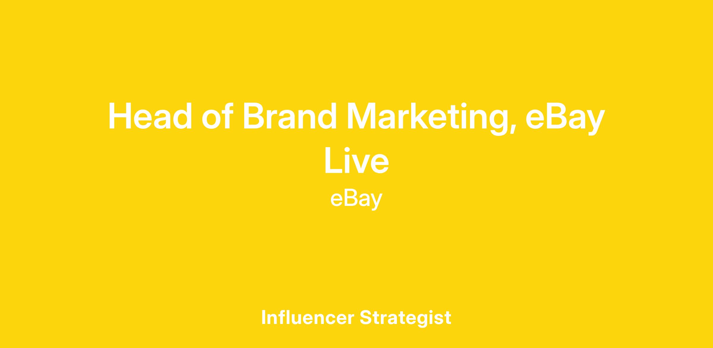 eBay is seeking an experienced and visionary marketing leader to head Brand Marketing for eBay Live. This role will shape how eBay shows up in the rapidly evolving Live Shopping space, driving both brand presence and business growth across multiple verticals — from Collectibles to Fashion and more.