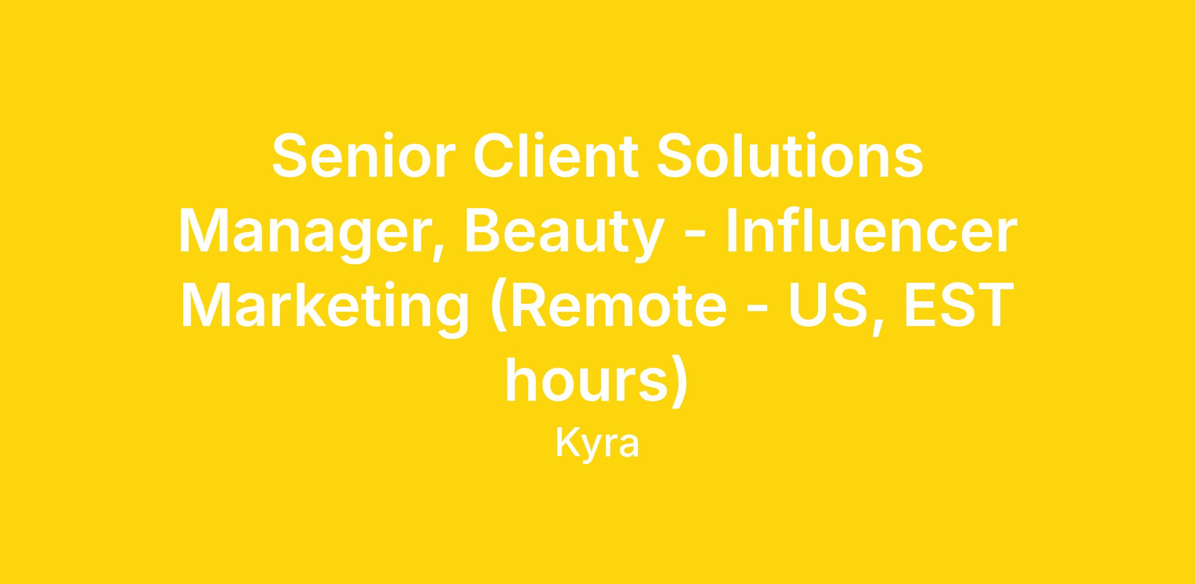 Reporting into the Head of Client Solutions, you'll be responsible for retaining and growing Kyra's beauty clients through the seamless delivery of high-performing creator activations, fostering strong client relationships, and identifying solutions that drive impact for brands navigating the creator beauty landscape.