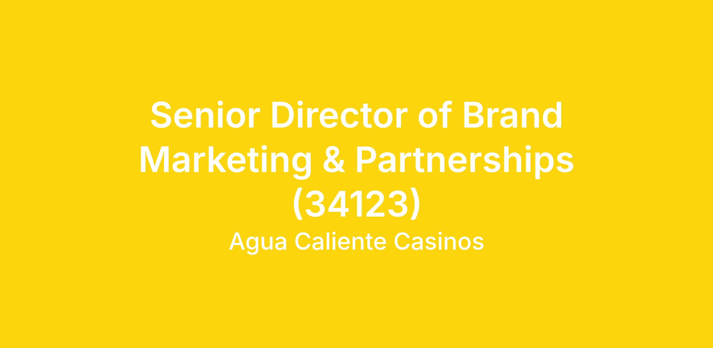 The Senior Director, Brand Marketing & Partnerships is responsible for shaping and executing Agua Caliente Casinos’ brand voice, visibility, and market presence across paid, owned, and earned channels. This role oversees advertising, media strategy, digital marketing, social media, public relations, and strategic sponsorships and partnerships.