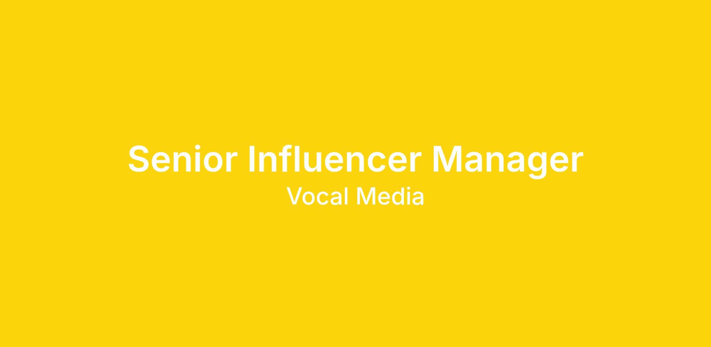 As a Senior Influencer Manager at Vocal Media, you will execute cross-platform influencer campaigns and lead relationships with Vocal's client organizations. This is an incredible opportunity to make a meaningful impact on the most important social issues of our time, while flexing your creative muscles.