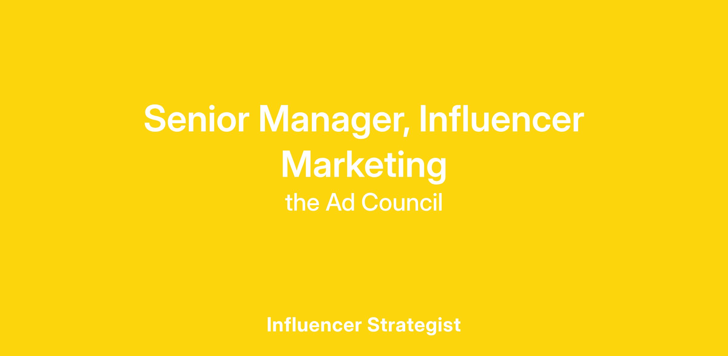As Sr. Manager, Influencer Marketing (known at Ad Council as Sr. Manager, Creators for Good), you will lead influencer strategy and execution for 4-6 dedicated social impact campaigns and support the growth of the Creators for Good brand. You will be a key member of a team that is growing rapidly and expanding their remit of talent and trusted messenger engagement, particularly in the areas of sports and entertainment. The role will include both day-to-day campaign execution and strategic planning.