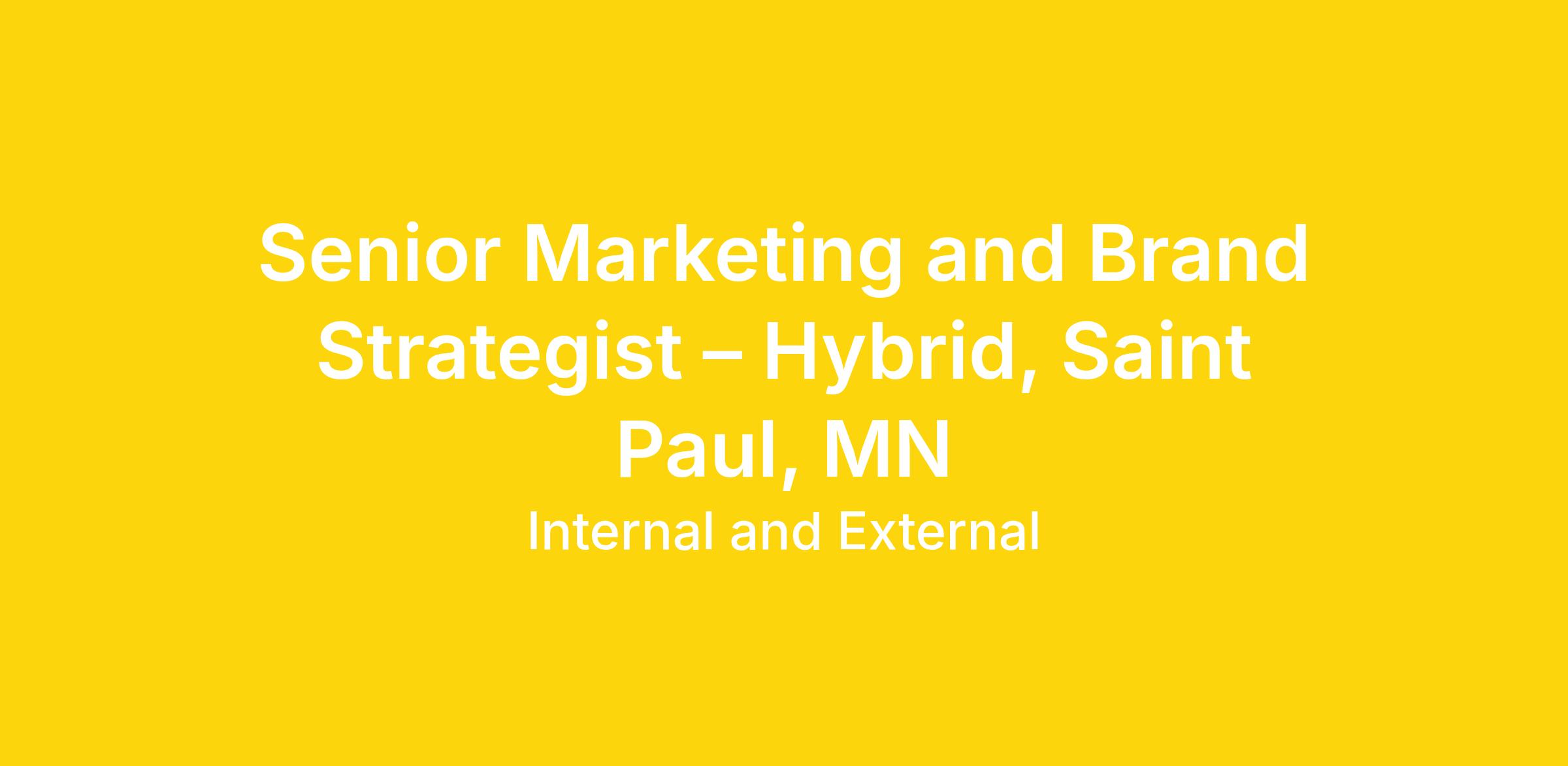 Senior Marketing and Brand Strategist – Hybrid, Saint Paul, MN