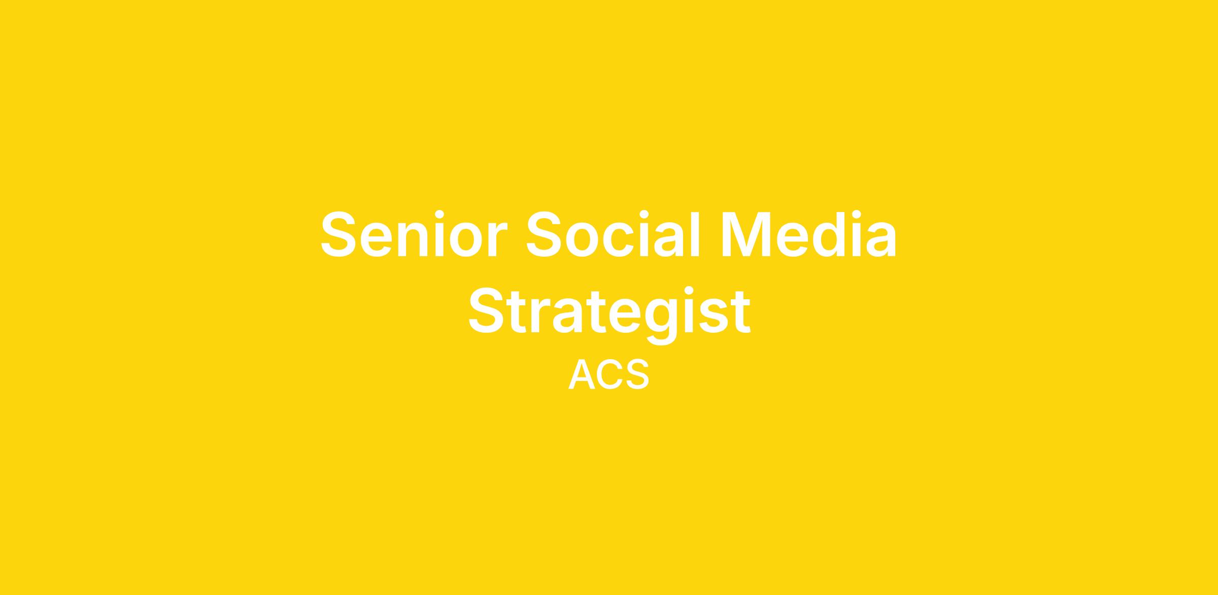 Summary: The Senior Social Media Strategist is responsible for developing and executing social media strategy that advances ACS priorities, engagement, and visibility. This role leads platform strategy, content planning, and performance analysis while also participating directly in content execution, campaign deployment, and community engagement. Working closely with VP of Strategic Communications, AVP of Integrated Communications, and the marketing team, the Senior Social Media Strategist balances strategic planning with hands-on delivery and uses data, social listening, and platform trends to continuously refine approach and impact. This role is accountable for demonstrating measurable business impact from social media efforts, including lead generation, conversion, and revenue contribution where applicable.