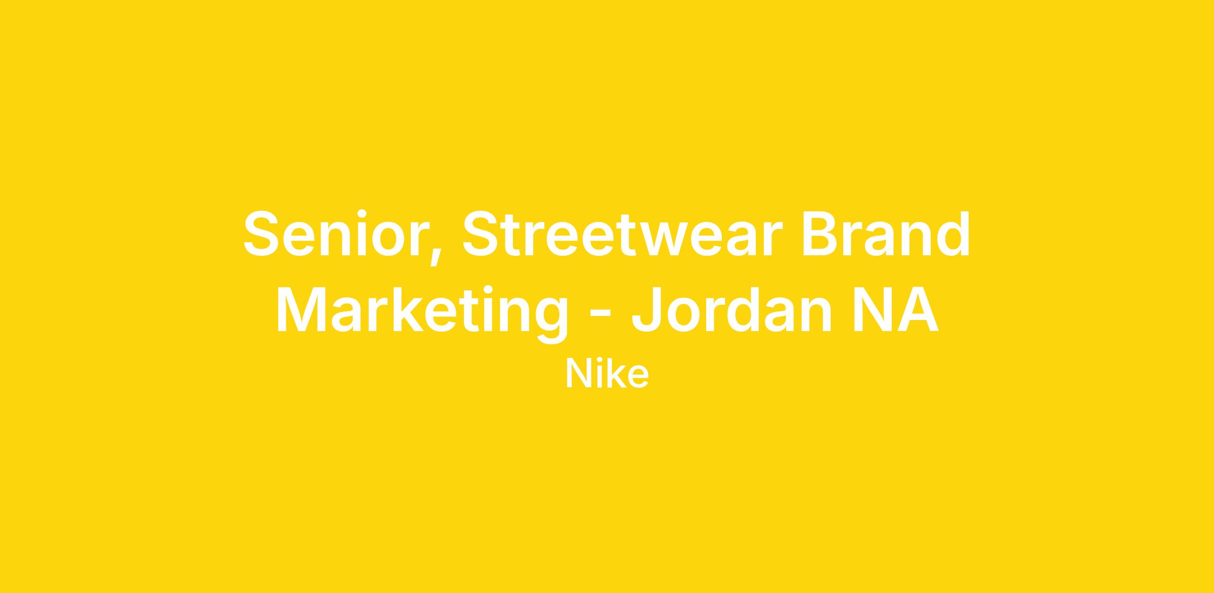 As Senior, Streetwear Marketing for Jordan North America, you will help seek, build, and activate the right relationships, insights, and moments across the streetwear ecosystem. You will operate close to culture and community, working across teams to ensure Jordan shows up in ways that are relevant, credible, and timely against key category, brand, and business priorities.