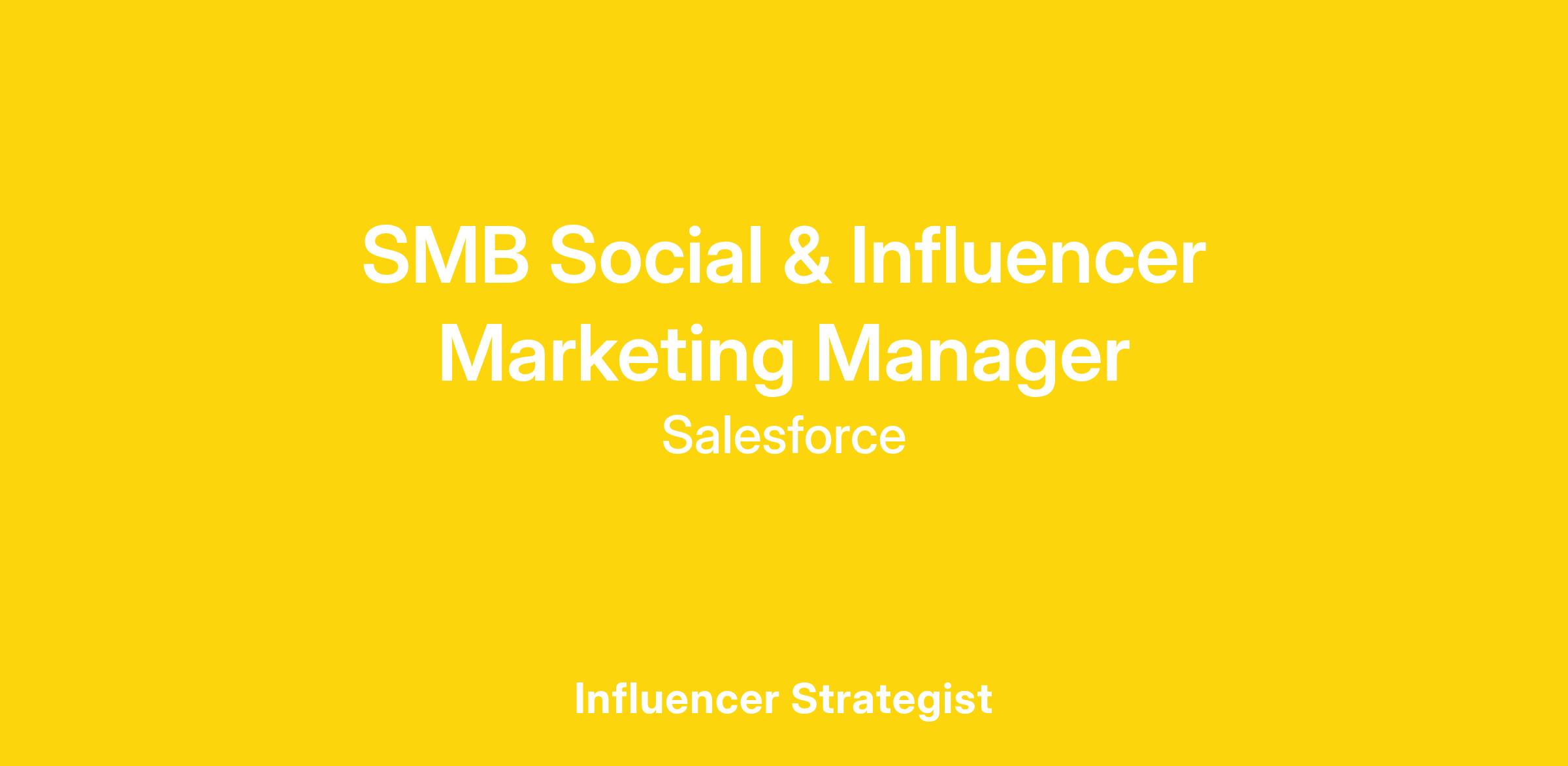 Salesforce is looking for a social media manager to activate, educate, and inspire audiences for our small-medium sized business (SMB) segment. As our social lead, this role serves as the brand custodian and social champion, driving social strategy and execution that grows our audience and engagement. This is a key role on a team that is paving the way to grow our brand in this key business segment.