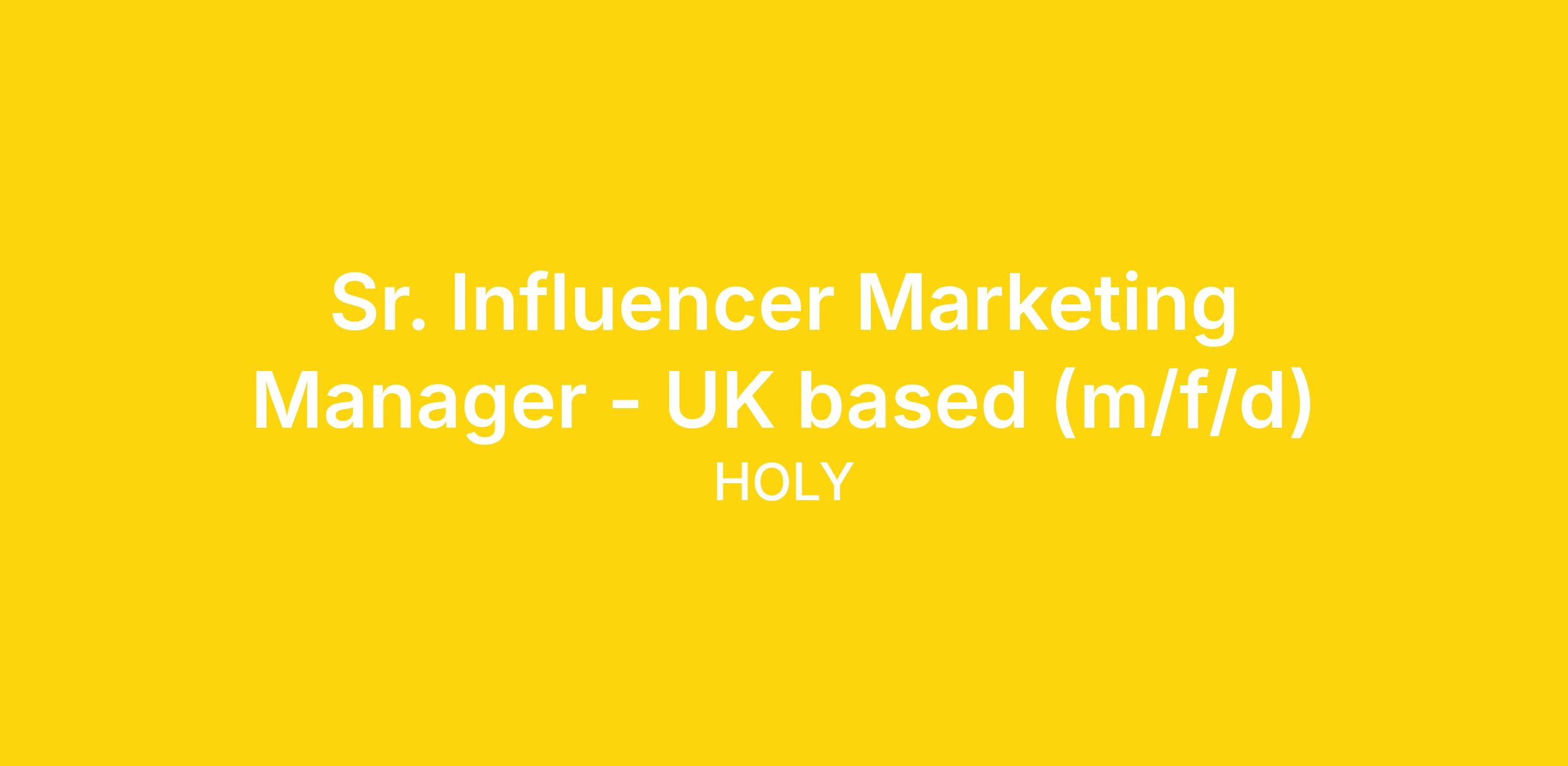 Influencer marketing is one of HOLY’s biggest growth levers, and the UK is a key focus market. We’ve built strong traction with creators, customers, and communities, and now we’re doubling down to scale the UK from mid–7-digit revenue today to nearly €100M in annual revenue over the next two years. In this role, you’ll own and execute influencer and partnership campaigns that drive performance, not just hype.